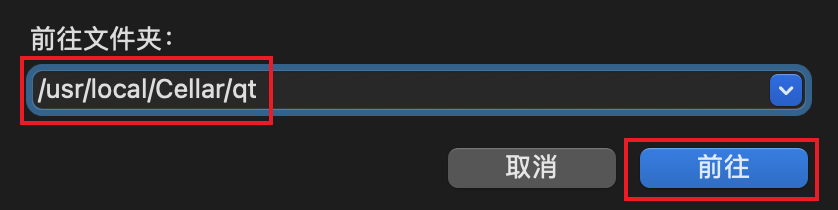 - 可以使用快捷键Command + Shift + G手动输入Qt的文件夹:/usr/local/Cellar/qt