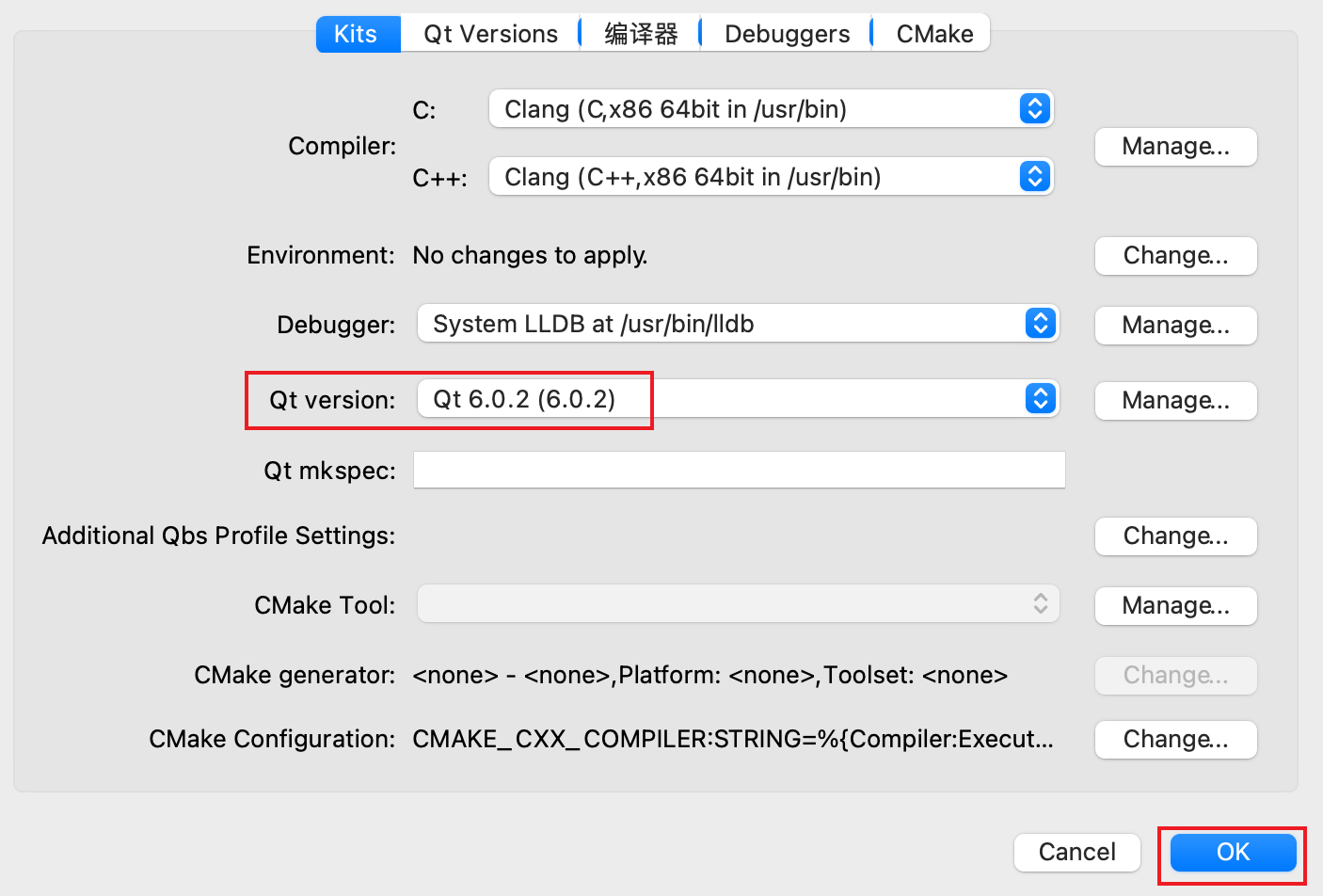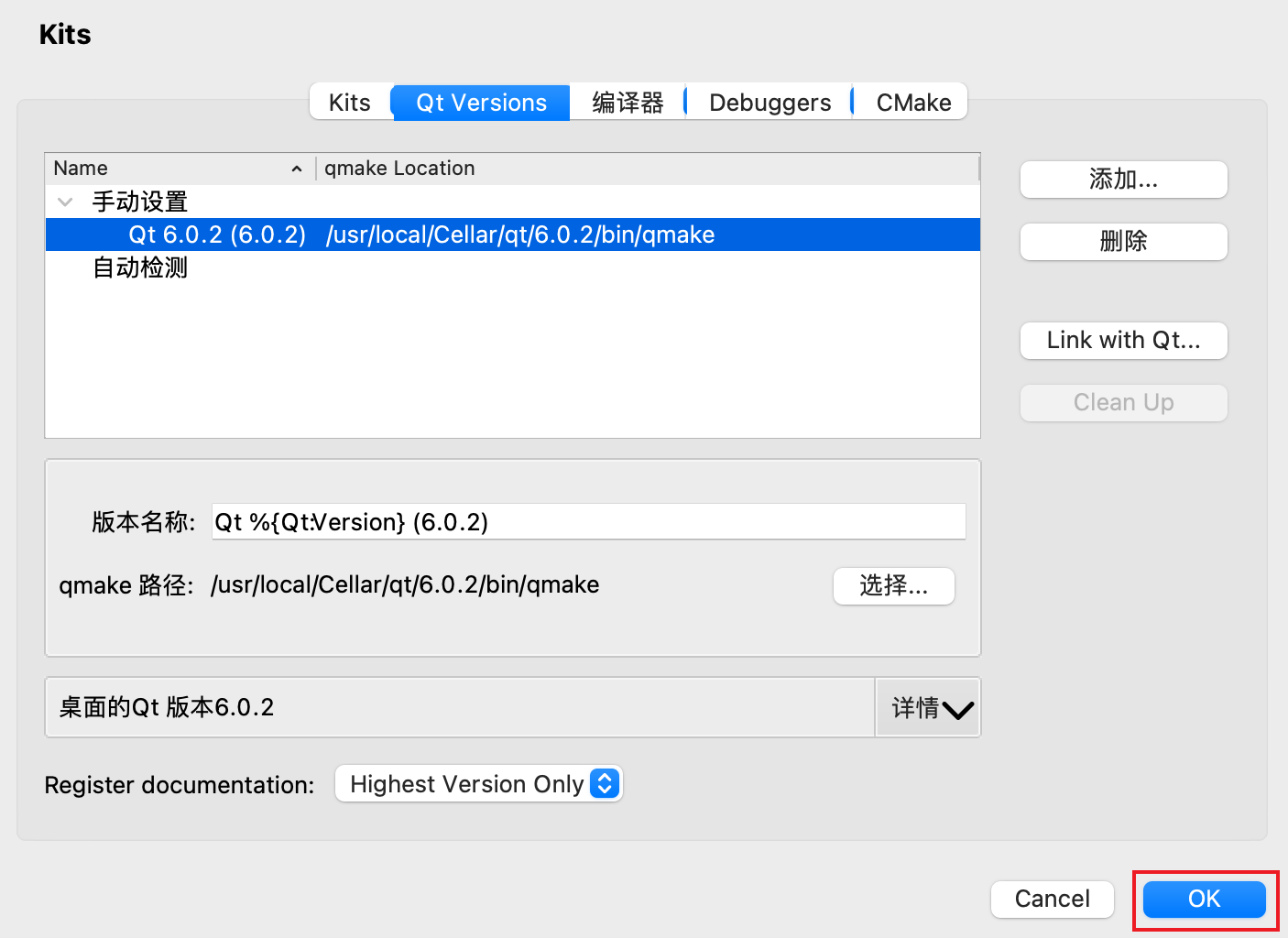 相关配置:通过brew安装的Qt和Qt Creator是分开的,需要在Qt Creator中设置一下Qt的路径,将两者联系起来