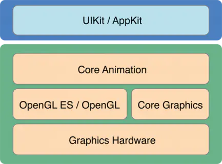 - UIKit:(UIView动画)最常用的视图框架,封装度最高,都是OC对象。
